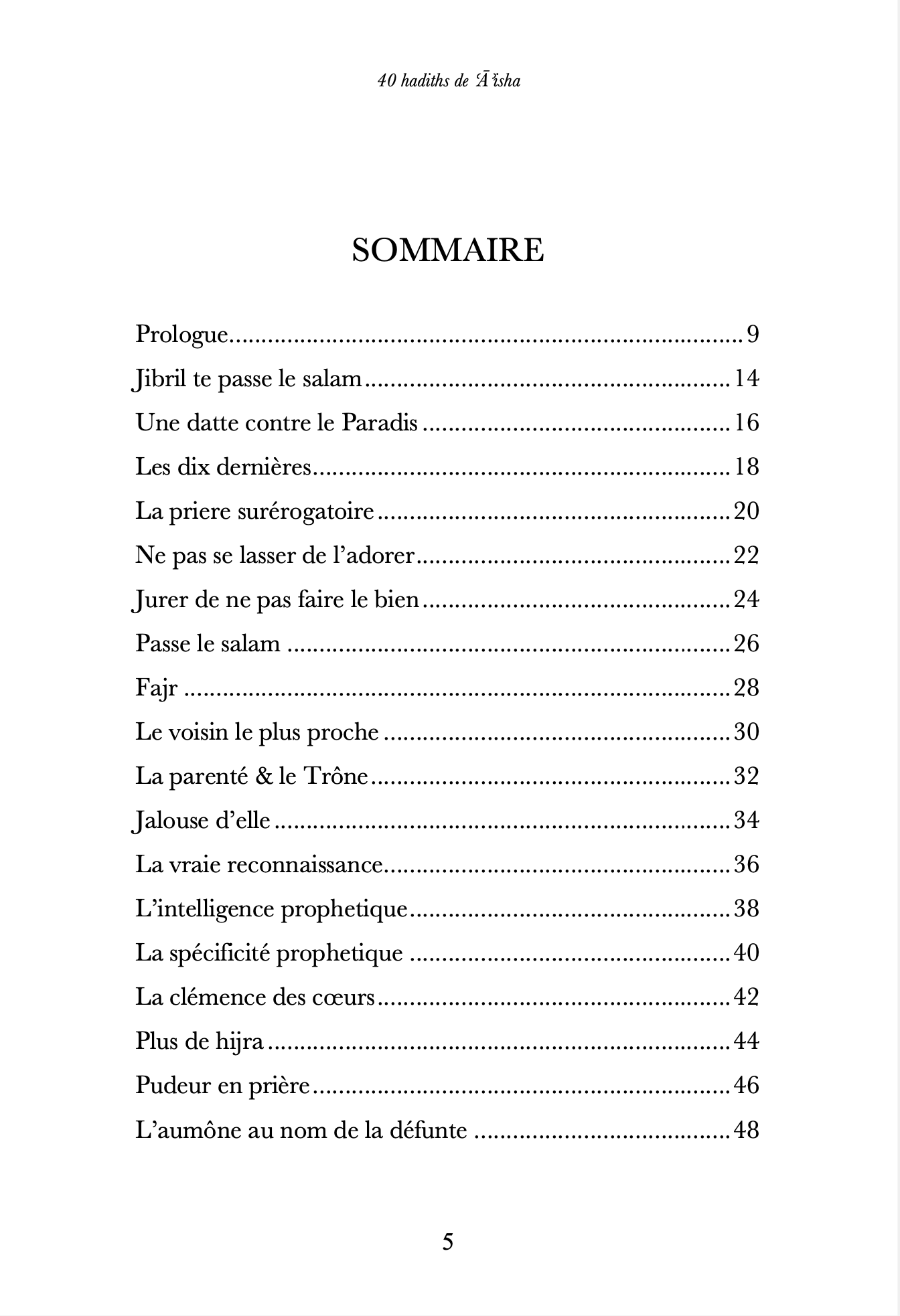 ʿĀʾisha bint Abī Bakr, épouse bien-aimée du Prophète ﷺ, a été l’une des femmes les plus éminentes de l’histoire islamique : savante, juriste, pédagogue, femme de caractère et de foi. Elle a transmis des centaines de aḥadīth, défendu la vérité avec courage, et a demeuré un modèle intemporel pour les générations de croyants et croyantes. À travers 40 aḥadīth authentiques, ce recueil explore :
