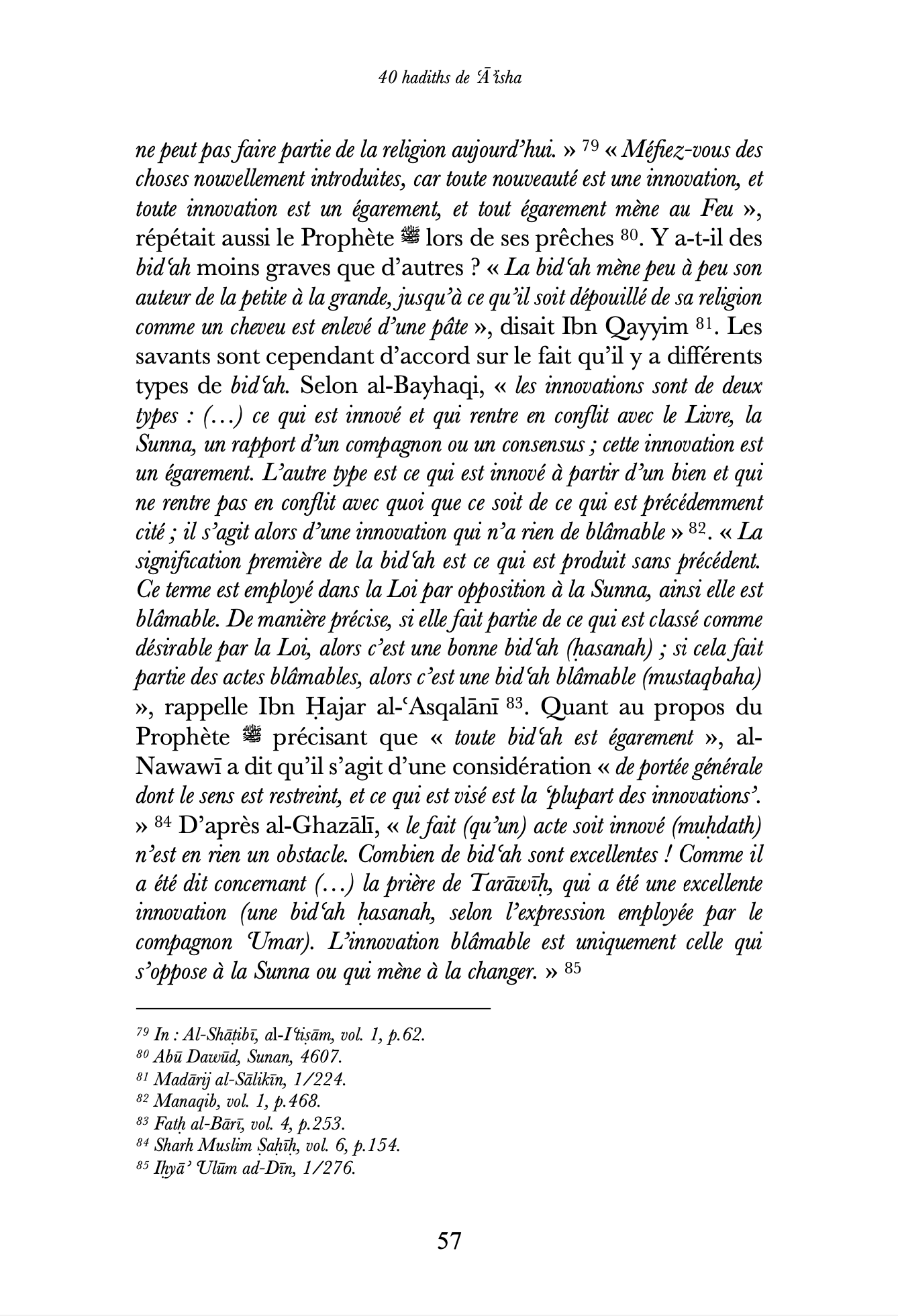 Chaque ḥadīth est accompagné de commentaires éclairés issus des œuvres de grands savants de la tradition islamique tels qu’Ibn Taymiyya, al-Ghazālī, Ibn Ḥajar al-ʿAsqalānī ou al-Nawawī.