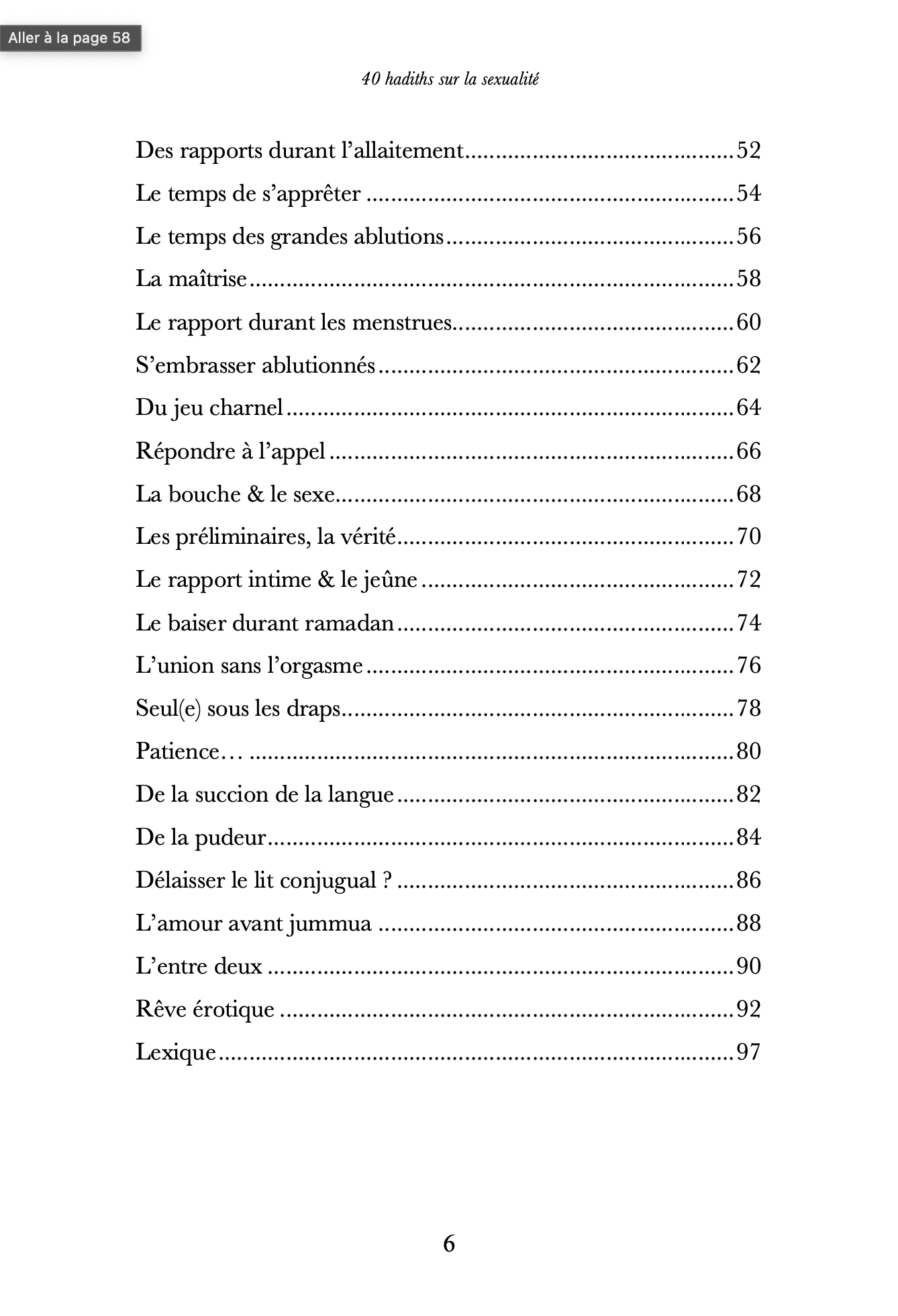 Chaque ḥadīth est enrichi d’explications claires, accompagnées de commentaires d’éminents savants tels qu’Ibn Taymiyya, al-Ghazālī et Ibn Ḥajar al-ʿAsqalānī, offrant une compréhension profonde, nuancée et enracinée dans la tradition islamique. Un ouvrage inédit en langue française, pensé pour toute personne souhaitant concilier spiritualité et intimité, sans tabou ni compromis.