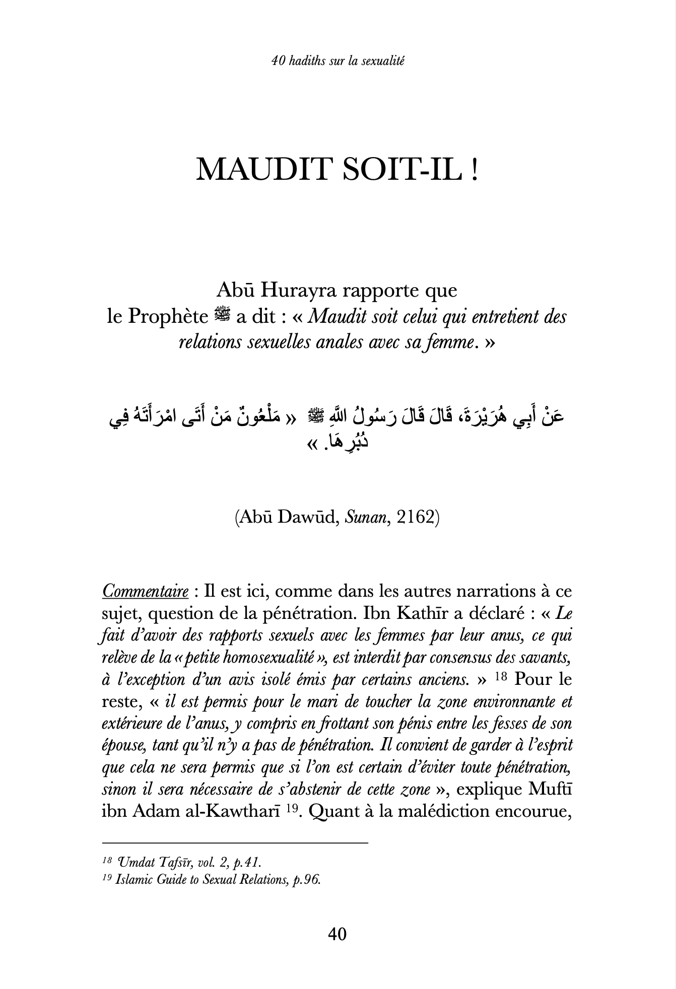 40 hadiths sur la sexualité (avec commentaires) – Anissa Editions