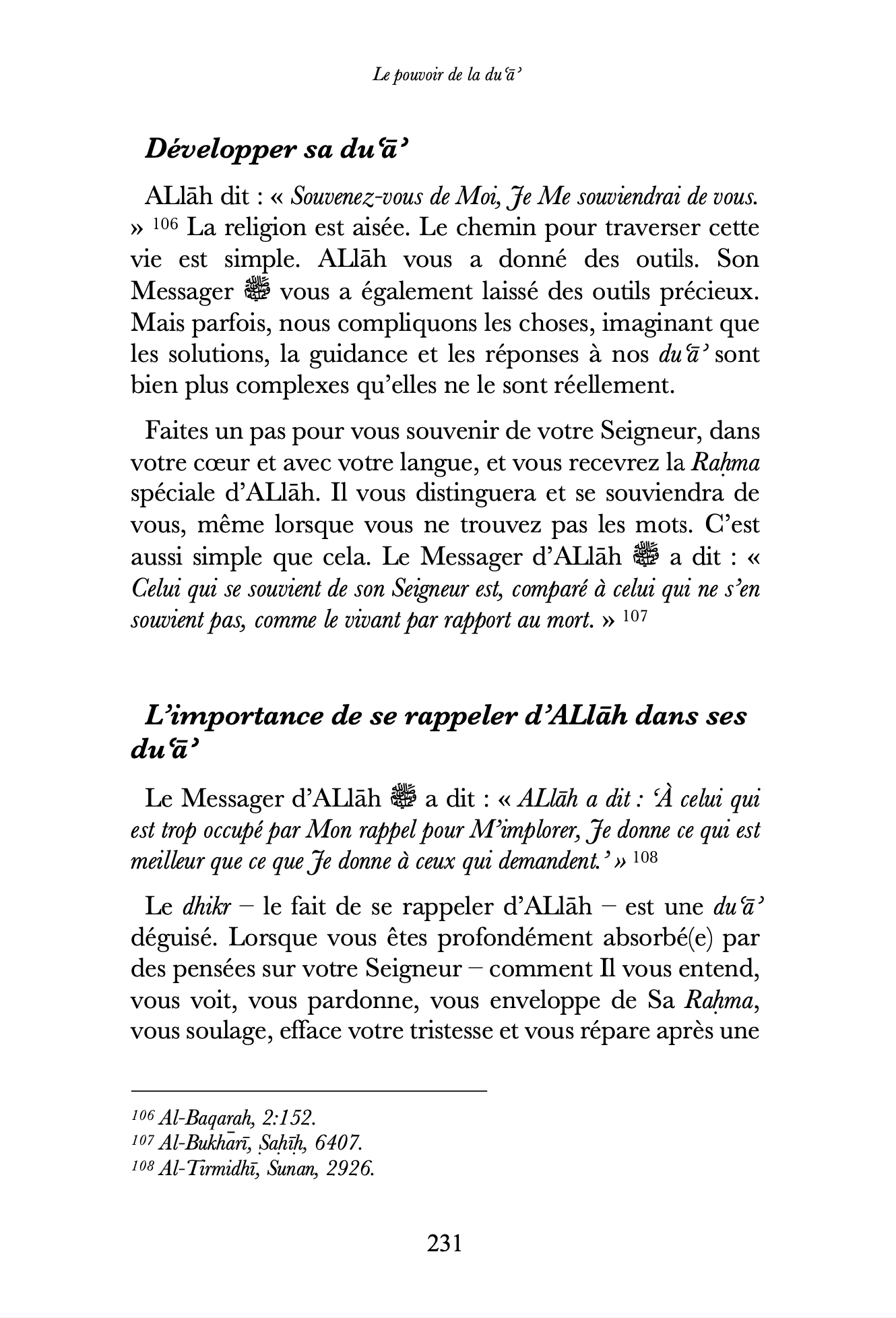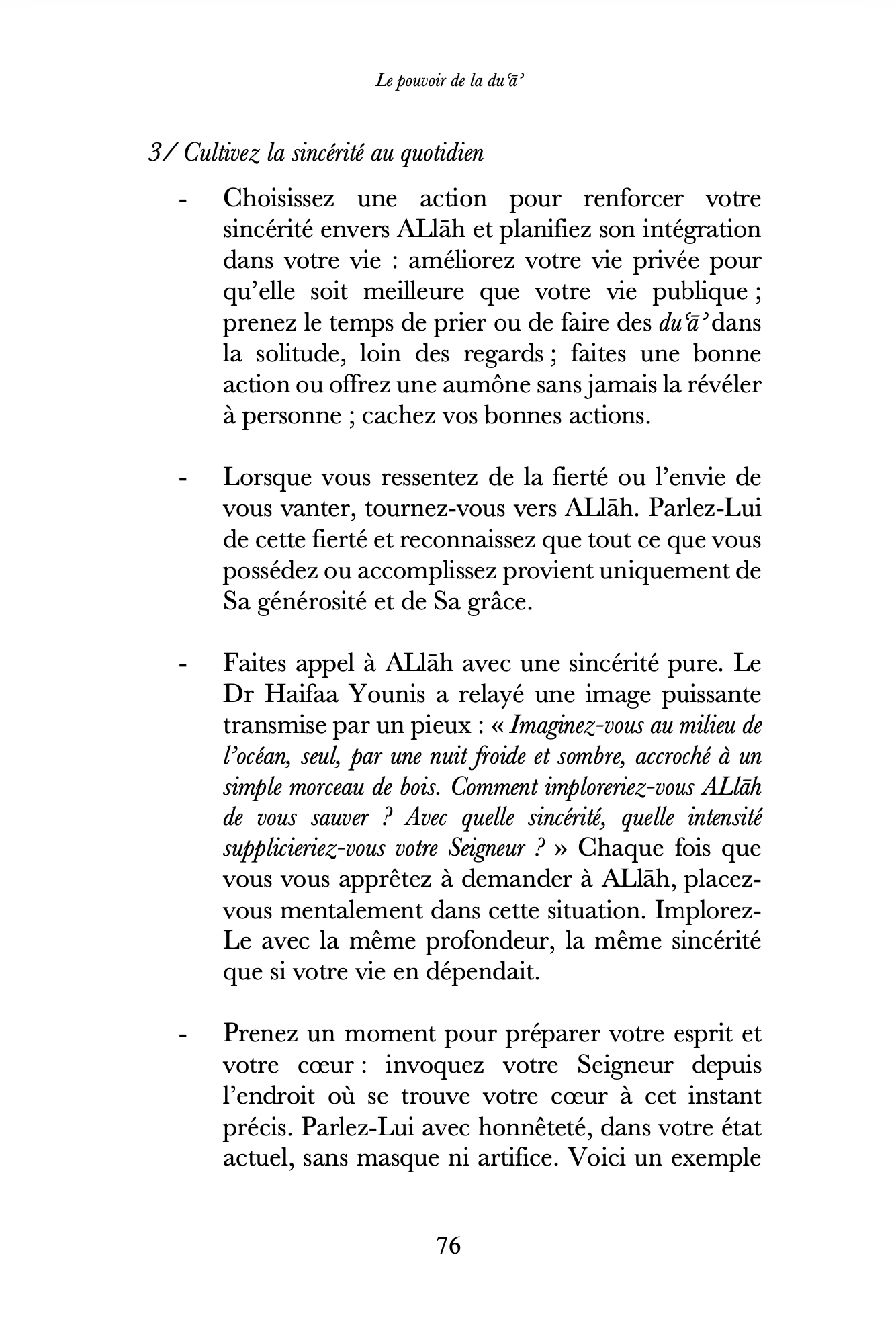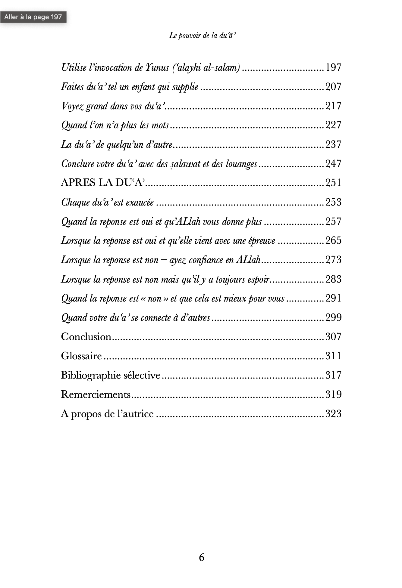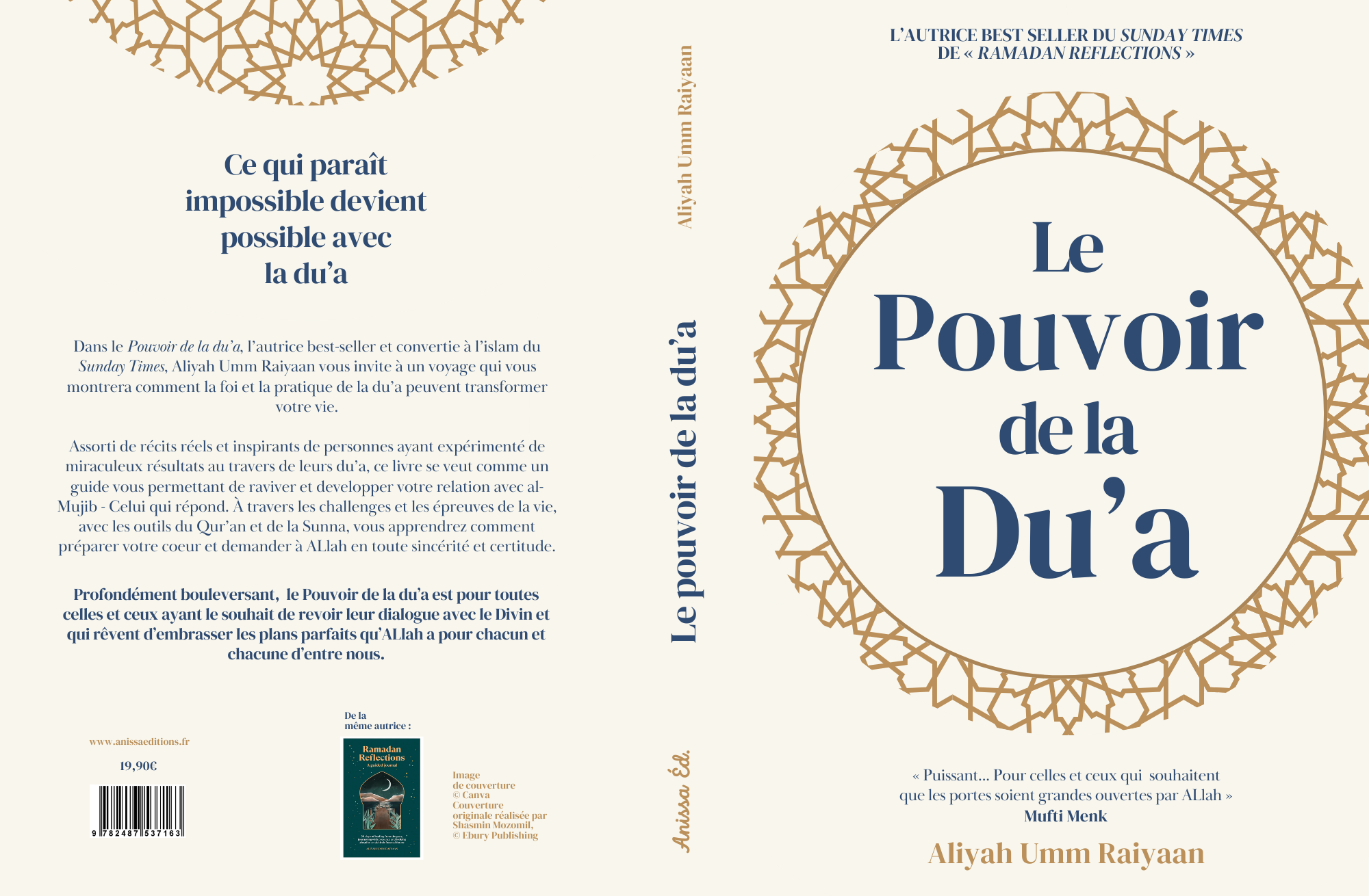 Dans le Pouvoir de la du’a, l’autrice best-seller et convertie à l’islam du Sunday Times, Aliyah Umm Raiyaan vous invite à un voyage qui vous montrera comment la foi et la pratique de la du’a peuvent transformer votre vie. Assorti de récits réels et inspirants de personnes ayant expérimenté de miraculeux résultats au travers de leurs du’a, ce livre se veut comme un guide vous permettant de raviver et developper votre relation avec al-Mujib – Celui qui répond. À travers les challenges et les épreuves de la vie, avec les outils du Qur’an et de la Sunna, vous apprendrez comment préparer votre coeur et demander à ALlah en toute sincérité et certitude. Profondément bouleversant, le Pouvoir de la du’a est pour toutes celles et ceux ayant le souhait de revoir leur dialogue avec le Divin et qui rêvent d’embrasser les plans parfaits qu’ALlah a pour chacun et chacune d’entre nous.